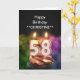 Queimando velas de bolo de aniversário de 58 anos em forma de números em cima de um cupcake de chocolate. Personalizar com o nome da pessoa de aniversário. Adequado para um homem ou uma mulher. Veja toda a gama de cartas para idades e relacionamentos na minha loja. Todos os direitos de autor da trabalho de arte Norma Cornes
