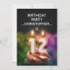 Adicione um nome para personalizar este convite de festa único. Um divertido convite de festa de 12º aniversário com números de velas felizes queimando em um cupcake de chocolate. Veja toda a gama de convites e cartões na minha loja.