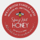 Abelha de mel estilizada, apanhadora de olhos, num fundo vermelho. Personalize com seu nome apiário, endereço e descrição do mel (flor silvestre, crua, etc.). Inclua também o seu peso líquido de mel. Conversões de peso líquido de mel comum: 8 oz (227 g), 12 oz (340 g), 16 oz (454 g), 32 oz (907 g), 5 lb (2,27 kg).