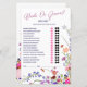 Prepare-se para o melhor jogo de adivinhação, "Adivinha quem, noiva ou noiva?" Teste seu conhecimento do casal enquanto os convidados tentam determinar quem seria mais provável fazer certas coisas, a noiva ou o noivo. Com elegantes ilustrações florais de primavera-verão em tons vermelhos, roxos, cor-de-rosa e terracottas decorando a folha, este jogo adiciona um toque na moda à sua celebração. Que comece a competição amigável!