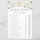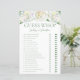 Este Elegante Floral Branco Adivinha Quem? A folha de jogos do chá de panela trará muito diversão e risos para o seu chá de casamento! A página é elegante e encantadora. Seu belo design com rosas brancas de múltiplas abas no estilo de aquarelas contemporâneo é perfeito para qualquer casamento floral, romântico, vintage ou formal. Este jogo fácil e divertido traz muitas risadas a qualquer chá de panela! Basta dar uma folha a cada convidado (não se esqueça das canetas), ajustar o temporizador por 5 minutos e deixar a loucura começar! Ficará surpreso com quantas respostas as pessoas conhecerão, assim como, quem realmente conhece melhor a noiva. Em segundos você pode ver como sua folha de jogo ficará. Basta selecionar Personalizar este Modelo e carregar os nomes da noiva e do noivo.