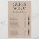 Esta adorável folha de chá de panela é simples e encantadora, perfeita para qualquer chá. Este jogo fácil e divertido traz muitas risadas a qualquer chá de panela. Basta dar uma folha a cada convidado (não se esqueça das canetas) e deixar a diversão começar! Ficará surpreso com quantas coisas diferentes as pessoas sabem sobre noiva e noivo. Para fazer deste jogo, basta selecionar Personalizar este modelo e digitar o nome da noiva e o nome do noivo.