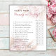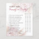 Celebre o chá de fraldas com o jogo interativo "Mamãe ou Pai adivinhem quem", criando memórias alegres e entusiasmo entre os convidados. 14 perguntas envolventes onde os convidados adivinham quem cada declaração descreve, a mãe ou o pai. O elegante design floral cor-de-rosa cria um ambiente minimalista e encantador para o evento, por um dia cheio de amor, alegria e momentos carinhosos. Use as ferramentas de design para personalizar o texto e as fontes.