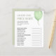 Adicione risadas e diversão ao seu Chá de Bebê com nosso Jogo 'Adivinhe o Preço Certo' Menino do Balão Verde! Uma maneira divertida de testar as habilidades dos seus convidados sobre bebês! Adquira o seu hoje e crie memórias inesquecíveis!