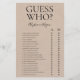 Este Adivinhado Rústico Adivinha Quem? A folha de chás de panela LGBTQ é simples e encantadora - perfeita para qualquer chá que comemore 2 parceiras identificadoras femininas. Este jogo fácil e divertido traz muitas risadas a qualquer chá de panela. Basta dar uma folha a cada convidado (não se esqueça das canetas) e deixar a diversão começar! Ficará surpreso com quantas coisas diferentes as pessoas sabem sobre as noivas. Para fazer deste jogo, basta selecionar Personalizar este modelo e digitar os nomes das noivas e suas primeiras iniciais.