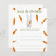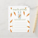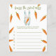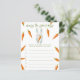 Convites para chuveiros de bebês neutros em termos de gênero. Apresentando o ditado "UM PEQUENO BUNNY ESTÁ A CAMINHO!", uma ilustração de um coelho aquoso (coelho) com cenoura em patas, e muitas cenouras cor de laranja. Itens correspondentes disponíveis.