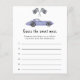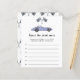 Cartão de convite para chá de fraldas do tema Race car com ilustrações de aquarela de um carro vintage roxo (violeta) e de preto - branco. "Corrida para um chá de fraldas."