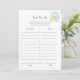Este é um cartão de jogo de adivinhação da idade deles. Um guarda-chuva azul, bonito, com uma raposa e um elefante sob ela, sobre um fundo branco na frente, e fundo amarelo com pontos de polca brancos na parte de trás.