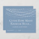 Esta linda e moderna luz azul empoeirada Adivinha Quantos Kisses & Hugs O Cartão de Jogo de Chá de panela é perfeito para o seu chá de casamento! Basta encher uma tigela, cesta ou jarro com beijos e abraços de Hershey e ter esses lençóis por perto. Enquanto os hóspedes se misturam durante a festa, façam-nos adivinhar quantos existem e colocar lá adivinhação e nome numa folha. A pessoa com o palpite mais próximo ganha os beijos e abraços.
