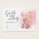 Um jogo de chá de fraldas de ursos de peluche com um simples fundo branco comum, um ursinho de aquarela, um balão cor-de-rosa, estrelas douradas e uma garrafa de bebês, e um modelo de "adivinhem quantas" é fácil de personalizar.