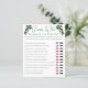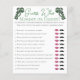 Este elegante jogo de Dia de São Patrício ou Chá de fraldas irlandês chama-se "Adivinhem quem". A design: desenhada à mão a tinta preta, esta carta apresenta detalhes de canto inspirados na safra desenhada à mão e uma shamrock verde de sorte, tudo contra um fundo branco elegante. Como jogar: cada convidado recebe um cartão e um lápis. Cada hóspede adivinha qual resposta as Mamães e Pais deram e circula as lábios (Mamães) ou o bigode (Pai) vence. O convidado com as respostas mais corretas ganha o jogo.