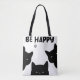 Brighten your day with our adorable 'BE HAPPY' tote bag, featuring three mischievous black cats playfully peeking out! This charming design, complete with a little yarn ball, is perfect for spreading good vibes and showing off your love for felines."