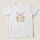 This adorable piglet illustration shows a sweet baby pig sitting in a rustic wooden tub, painted in soft pastel tones with gentle blush details. The watercolor style and rounded shapes create a cozy, storybook feel that is both playful and calming.