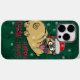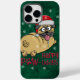 Uma imagem de Natal deliciosa numa capa de telefone de um bonitinho bonitinho filhote de desenho animado com um chapéu de Papai Noel e diz, "Feliz Natal" com neve ao seu redor.