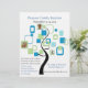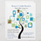 Folheto de reagrupamento familiar, com gráficos de uma árvore de aparência moderna, pronto para colocar fotos de sua família. Todo o texto é personalizável para atender às suas necessidades de evento. Que maneira excelente de anunciar um evento especial para a próxima família.