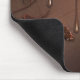 O "Yummy mousepad" apresenta uma rica aresta de derretimento de chocolate sobre um fundo castanho profundo de folhas de chocolate e borboleta. O texto diz que eu adoro chocolate.