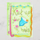 "Peguem seus saltos" e aproveitem o dia. Este convite faz uma maneira deliciosa para uma festa ou outro evento. A arte desenhada à mão embeleza esta coleção com uma bebida azul tropical com sotaques de flores e as palavras "Chute seus calcanhares". Uma borda multicolorido brilhante completa o design Totalmente personalizável para adicionar mensagens impressas e informações de sua parte!