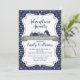 A Aventura aguarda o convite de chá de fraldas para rapazes de marinho e cinza. Montanhas e setas, convite para chás de fraldas.