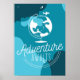A frase inspiradora "Aventura aguarda", a decoração de quarto infantil.