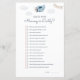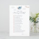 Modelo de jogos "Adivinhem Quem", com chá de fraldas azul e viagens vintage, apresentando uma ilustração aquática de um avião giro com uma granja e nuvens de festa.