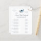 Modelo do jogo do chá de fraldas 'Name Aquele Storybook' com tema azul e viagens vintage, apresentando uma ilustração aquática de um avião giro com uma granja e nuvens de festa.