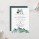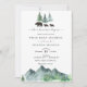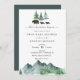 Um convite para Chá de fraldas duplo com montanhas de aquarelas, árvores e bebês e ursos de mama. Personalize com suas informações ou clique em "clique para personalizar mais" para ajustar o tipo de fonte, o tamanho e a cor.