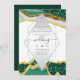 *** Bela convite de casamento com brilho esmeralda verde ouro ágata com CAMPOS DE MODELO DE TEXTO EM AMBOS OS LADOS para que você possa adicionar detalhes adicionais, como rsvp, direções, registro de presentes, etc. *** PERGUNTAS FREQUENTES: Acesse o DESIGNER AO VIVO GRATUITO da Zazzle para edições personalizadas e itens correspondentes e use a opção TRANSFERIR para visualizar este design em uma variedade de tipos de cartão/papel, tamanhos e texturas.*** USE AS FERRAMENTAS DE PERSONALIZAÇÃO para adicionar gráficos, fotos, códigos de leitura qr, mapas e outros elementos que você possa achar úteis para o seu item de evento.