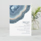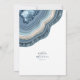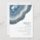 Nem todos os designs de casamento são criados iguais. Os layouts assimétricos para as peças neste impressionante conjunto de casamento provam que isso não é ruim! Bandas onduladas de cor em tons de azul empoeirado a bege arenoso com um centro de cristal brilhando formam um sotaque geode/agato na maioria das peças do conjunto. O cartão 'Menu' do casamento mostrado aqui apresenta o acima mais uma modelo para adicionar suas seleções de menu de casamento pertinentes. O contrário também permite que você adicione os nomes da noiva e do noivo e a data do casamento. Procure ID647 para ver todas as peças de coordenação neste conjunto.