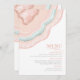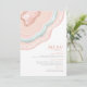 Nem todos os designs de casamento são criados iguais. Os layouts assimétricos para as peças neste impressionante conjunto de casamento provam que isso não é ruim! Banda de cor ondulada em tons contrastantes de ouro rosa e azul lacrimogêneo com um centro de cristal brilhando formam um sotaque geode/agate na maioria das peças do conjunto. O cartão 'Menu' do casamento mostrado aqui apresenta o acima mais uma modelo para adicionar suas seleções de menu de casamento pertinentes. O contrário também permite que você adicione os nomes da noiva e do noivo e a data do casamento. Procure ID647 para ver todas as peças de coordenação neste conjunto.