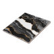 A pedra agata tem bandas de cores pouco contrastantes, como nesta design, onde se destaca a branca, a cinza e a cor preta com detalhes glamourosos e elegantes em ouro com faíscas. "Nada de brilho real, marmoreado ou agitado; é um efeito simulado."