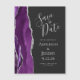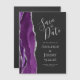 Esta elegante placa de imã salve a data moderna apresenta uma borda agitada com cor d'água roxa, aparada com falso brilho prateado. O texto personalizável é a cinza prateada clara sobre um fundo preto ardente.