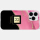 Personalize o seu nome em ouro e monograma em preto em caixa preta e dourada da tendência e agata cor-de-rosa.