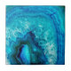 Pedras, cristais e minerais são um estilo de tendência de eterno. Este impressão apresenta uma imagem de uma pedra geodórica azul vibrante e para cima, cheia de pequenos cristais no bolso agata. Um tartaruga brilhante total ou uma coloração azul-aqua com linhas e faixas únicas. Um olhar lúdico, mas moderno e na moda. Azulejo cerâmico de pedra mineral de turquesa azul brilhante