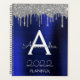 2022 Prata e Azul Marinho Brilho Glitter Monograma Nome e Inicial Caderno Espiral Casamento ou Calendário de Planejamento Anual. Isso torna o presente perfeito de aniversário de 16 anos, casamento, chá de noiva, aniversário, chá de bebê ou festa de despedida de solteira para alguém que ama luxo glamoroso e estilos chiques.