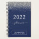 2022 Silver e Marinho Blue Sparkle Glitter Monograma Name ou Spiral Calendar Planner Notebook. Isto faz o doce e perfeito aniversário de 16 anos, casamento, chá de panela, aniversário, chá de fraldas ou festa de solteira presente para alguém que ama luxo de luxo e estilos quíticos.
