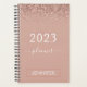 2023 Dourado Rosa - Bege Rosa Brilho Glitter Monograma Nome ou Inicial Calendário Espiral Planejador Caderno. Isso torna o presente perfeito para aniversário de 16 anos, casamento, chá de noiva, aniversário de casamento, chá de bebê ou despedida de solteira para alguém que ama luxo e estilos chiques.