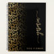 Personalize esta elegante design moderna com o seu nome num guião vertical de escrita manual de assinatura dourada num fundo preto com uma borda chic de manchas-leopardo douradas. Adicione o ano na fonte sans serif. (Para manter as cinzas no início e no fim do nome, substitua apenas as letras, deixando os símbolos no lugar.)