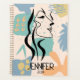 design abstrato com cores com formas irregulares douradas, cor-de-rosa, azuis e turquesas e arte de ver mulheres. Este design é para todos que gostam de abstrato. Você pode facilmente personalizar este item mudando o nome e a data.