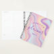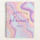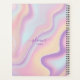 Um planejador moderno e personalizado. O design apresenta um fundo holográfico roxo, rosa, azul e abstrato amarelo iridescente. Personalize com seu próprio texto, nome e ano.