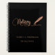 Um fundo preto chic, decorado com uma caneta de pena. Personalize e adicione um nome e ano(s). Texto do ouro: Notário