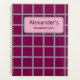Um padrão lúgubre, inspirado na safra, com quadrados coloridos de vinho ousados com bordas de cinza nítidas. Este planejador pode ser personalizado com qualquer nome e ano, fazer-o de um presente ponderado ou um organizador pessoal na moda.