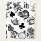 A Alice Clássica nos Personagens da Terra Maravilha - Baseada nas imagens originais de John Tenniel das Aventuras de Alice no País das Maravilhas dos anos 1800, há o Chapéu Louco, Gato de Cheshire, Coelho Branco e Alice, é claro. Ilustração de desenho de arte.