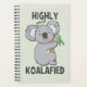 Altamente Koalaificado - Altamente Qualificado. Uma cinza bonita desenho gráfico de Koala com um trocadilho de urso koala. Design de animal selvagem engraçado e doce. Beijo selvagem australiano num eucalipto com folhas de goma