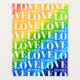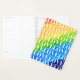 Este planejador colorido é decorado com um fundo arco-íris de cor d'água e um padrão de Amor é Amor na tipografia na moda branca.