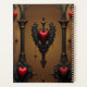 Amor eterno à sombra da escuridão gótica. O quadro do ornamentado, inspirado na arquitetura gótica, consiste em duas majestosas colunas negras adornadas com delicados sotaques dourados. Estas colunas enquadram uma grande abertura arcaica que brilha sobre um fundo castanho quente, fornecendo o contraste perfeito para os elementos escuros. Corações vermelhos deliciosos são parcialmente envoltos em teias finas.