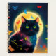 Um gato preto sobre fundo de lua, cercado por flores silvestres e borboletas, uma atmosfera de magia e tranquilidade em cores brilhantes. (POR FAVOR! - Veja também outras novas coleções para mais opções)