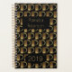 Ano Personalizado 2019, Nome Personalizado Pamela Peterson, Planejador de Padrão Inicial Elegante do Monograma Dourado Preto, Adicionar Nome e Ano, Planejador Mensal Semanal