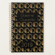 Ano Personalizado 2019, Nome Personalizado Queenie Quezada, Monograma Dourado Preto Planejador de Padrão Inicial Elegante, Adicionar Nome e Ano, Planejador Mensal Semanal