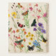 Um belo design de aquarela com flores silvestres e borboletas. Um arranjo colorido de flores e borboletas selvagens num jardim floral. Um design ideal para quem ama borboletas coloridas, florais de aquarela, ilustrações de flor silvestre e arte temática botânica. Uma decoração caseira perfeita ou presente para alguém especial. Personalize o monograma e faça dele seu.