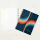 Ilustração geométrica de padrões de arcos duplos com estilo retrorativo com riscas de cor azul, azul, vermelha e bege em fundo azul escuro. Adicione o seu nome/monograma ou elimine o texto.